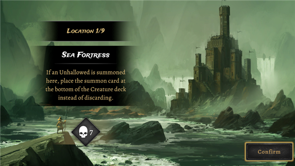 2、游戏一共会进行九关,第一关的效果是若有“不洁者”于此地被召唤,则将其召唤卡置于生物牌库底部,而非弃置之。