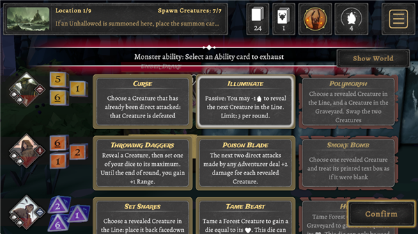 7、结束营地行动后,进入战斗,选择一张能力牌。