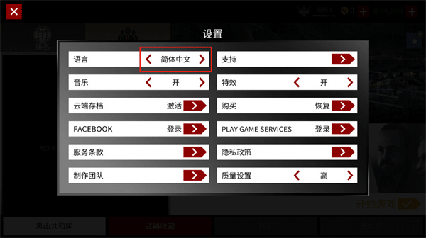 1、双击打开杀手47手游,点击左上角的齿轮按钮