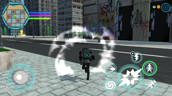 1、进入开始游戏,拖动左边的操纵杆可移动位置,点击跳跃按钮可以冲刺。
