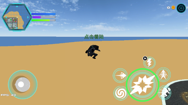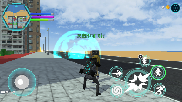 2、在向前冲刺的时候,点击跳跃键可飞行。