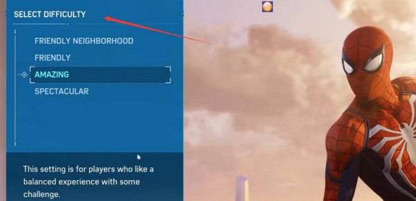 1、首先进入漫威蜘蛛侠迈尔斯3mod主界面,来到SELECT DIFFICULTY界面,玩家随便选择一个,点击进入。