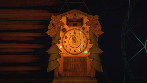 起身回头去看布谷鸟时钟,会发现时、分、秒阵的正确位置提示,根据位置调整时间,即可获得游戏第三张会说话的卡牌“弱狼 ”和通关必备道具胶卷。
