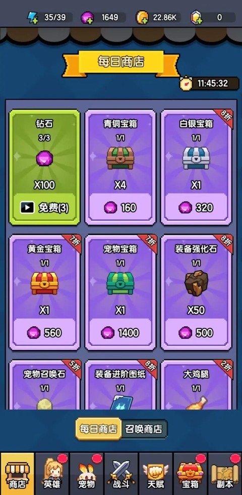 每通关一层,高品质宝箱的出货率会提高,低品质宝箱的出货率会降低,每天有2次免费次数和2次看广告次数,必须全部完成!