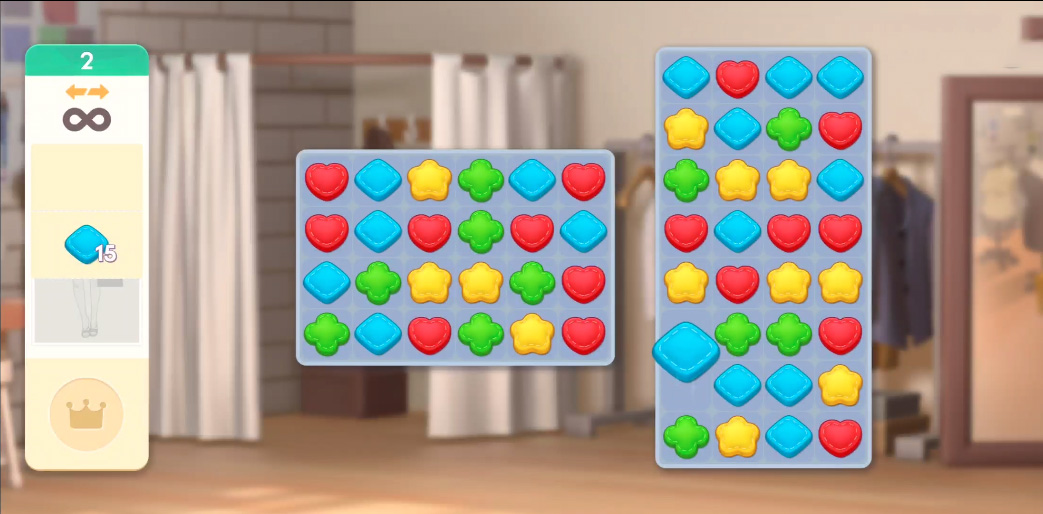 这是完美改造游戏的核心玩法。你需要在每个关卡中解决一系列糖果粉碎式的谜题。通过交换相邻的游戏片块,你需要在限定步数内,创建至少三个相同图块的组合以清除它们,达成关卡目标。