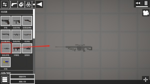 2.进入游戏地图后,左侧会展示多种选项,如添加人物、武器、道具等。