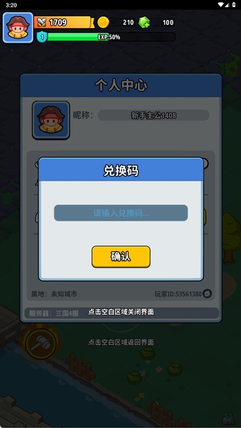 1、进入游戏后,点击左上角头像,点击兑换码;