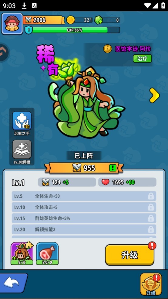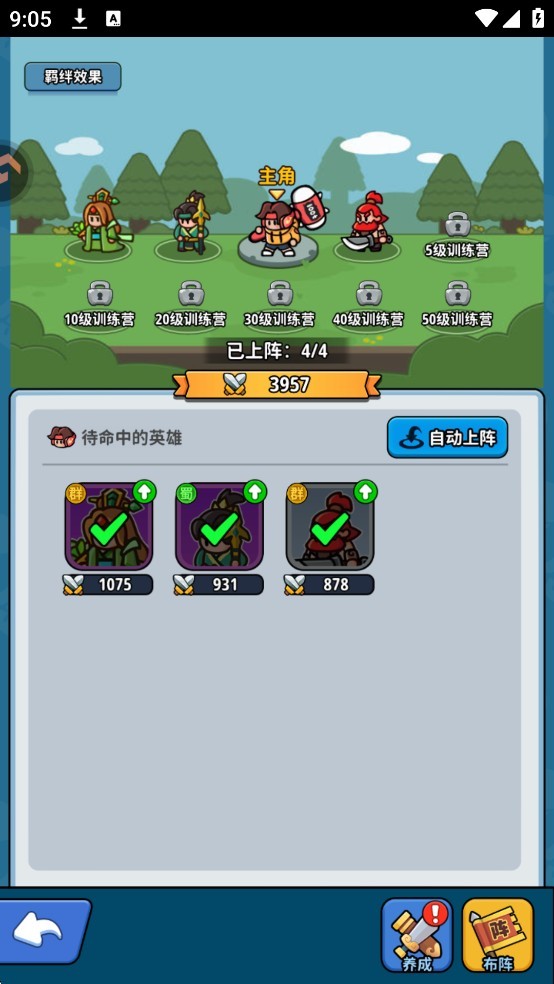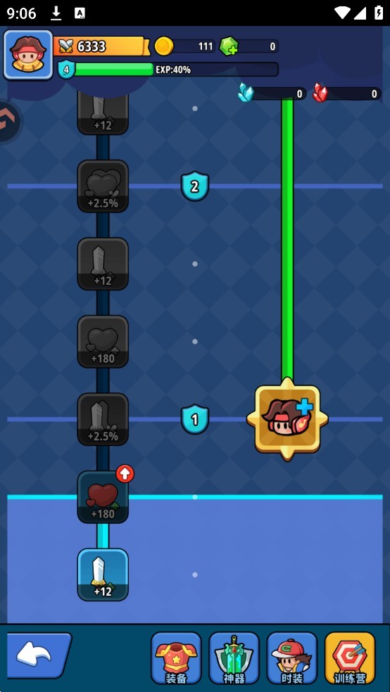 紧跟主线任务,重点提升上阵英雄等级,多提升训练营天赋增加上阵人数。肉块多的时候,给其他英雄升级也能加全体英雄属性。打boss会掉落装备,常换高级装备也可提升战力。