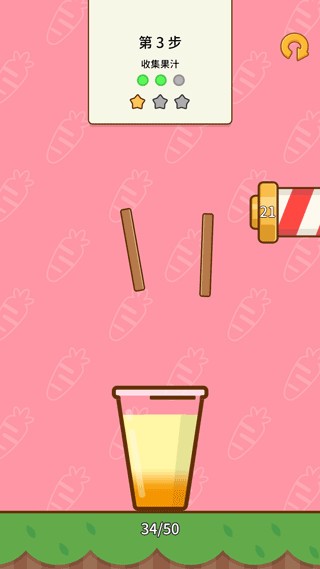 3、收集香橙,需要使香橙准确的进入到杯中。