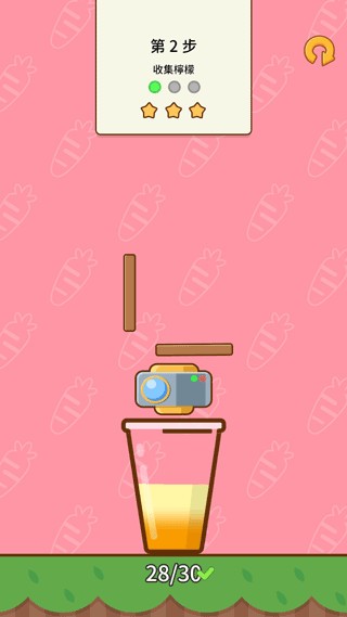 4、收集柠檬,使柠檬准确的进入到杯中。