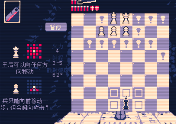 霰弹国王是一款从Steam移植而来的回合制策略游戏,这款游戏采用了复古的像素游戏画风,带给玩家别样的视觉效果感受,这款游戏中玩家可以通过合理的走位来击败摆放的国王,而且游戏有一定的上手难度,继承了国际象棋的规则,玩家需要熟悉,有需要的用户一定不要错过。