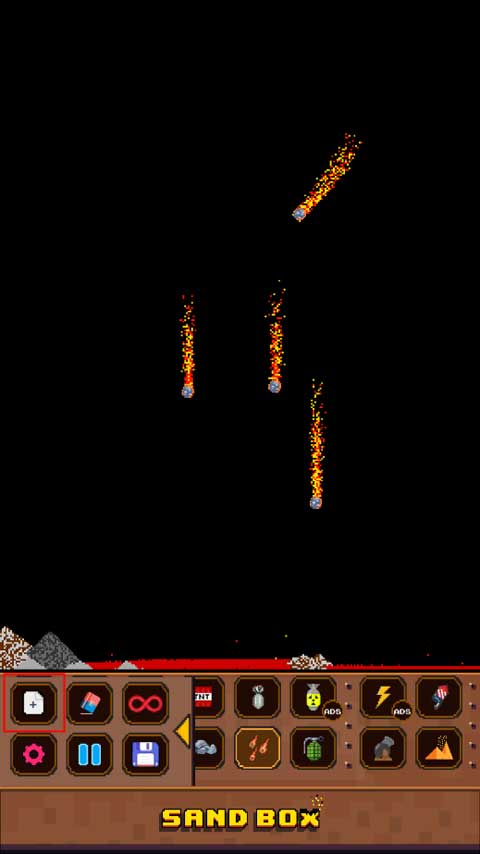4、如果想要重新创建一个新的沙盒世界,则可以点击左边红色框框选中的按钮清空上方所有的东西。