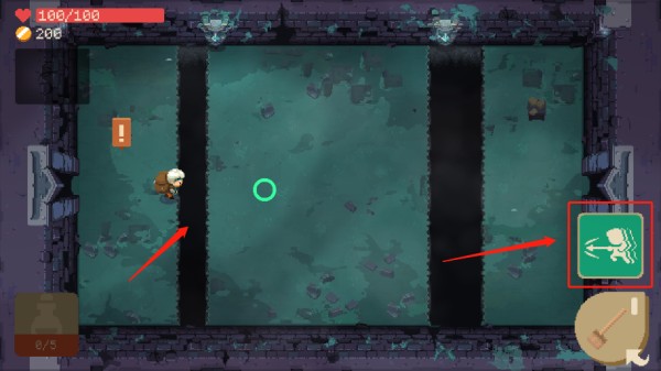 6、当遇到图示的阻碍,无法行走时,点击图示冲刺