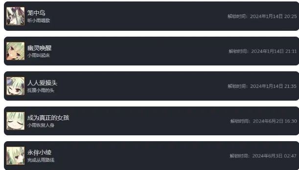 小春线全成就,正常进入小春线到结束,即可全部解锁成就。