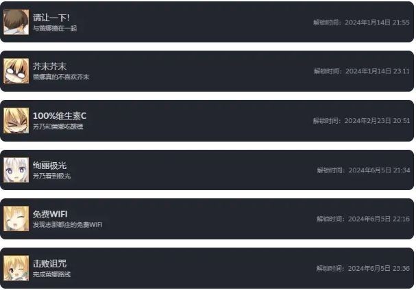 芳乃线全成就,正常进入芳乃线到结束,即可全部解锁成就。