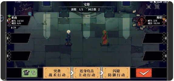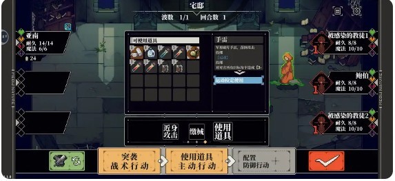 1.开局移动位置到最远+使用道具“手提灯”(作为易燃物)+闪避(也可以反击,但是初始主角反击数值太低,成功概率太小了)。