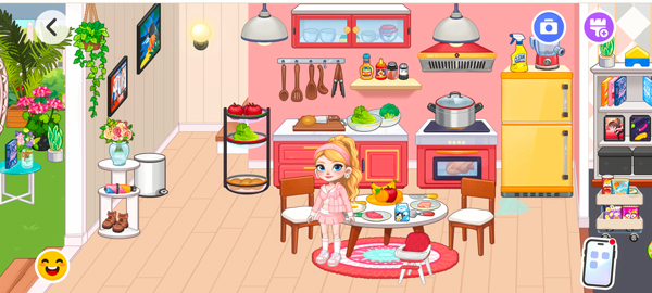 6、你可以给角色喂食食物,让她做表情等;