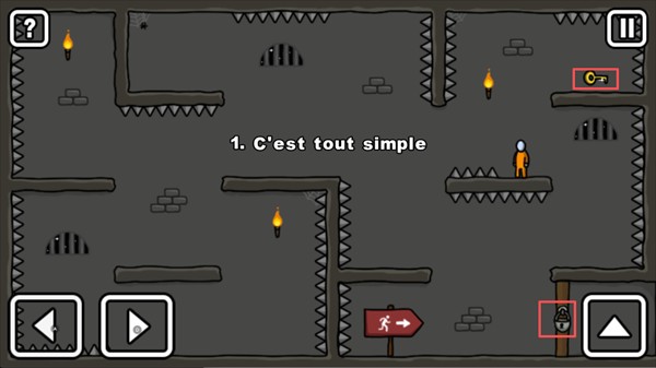 在第1关中,玩家需要操控火柴人成功获取钥匙并打开出口大门,同时注意躲避沿途的尖刺陷阱,确保自身安全。
