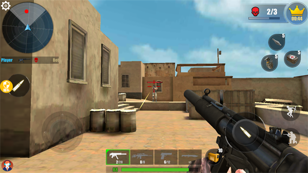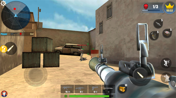 3、使用各种不同类型的武器,体验不同的射击方式。