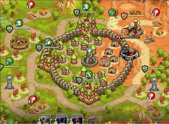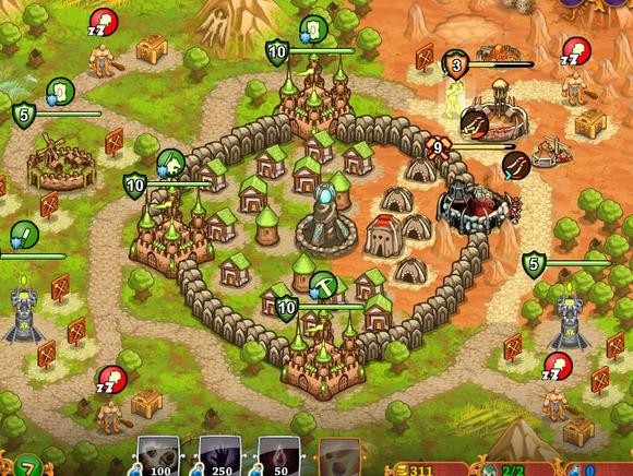 骑兵回满血后立马攻击左边的魔法塔,步兵调去修城堡!出来的小兵可以用100魔法技能秒掉!