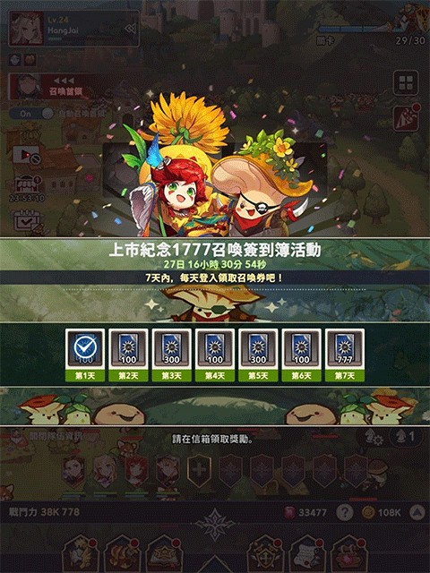 游戏现时有两个开服登入活动,一个只要累计登入7日即可获得1777抽;另一个则是14日登入活动,到6日时可领到普池300抽。