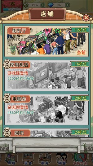 3.当你提升到一定等级之后,解锁家用机店、电脑房和网吧等