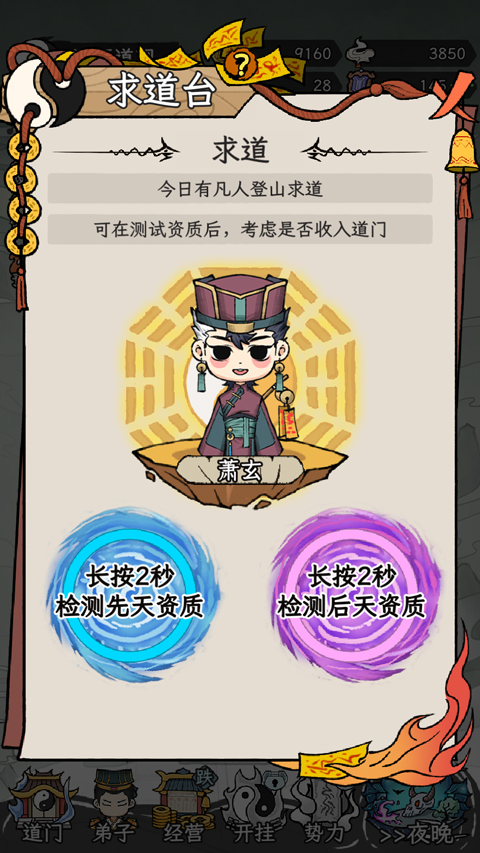 每天都要去求道台招募新弟子,优先选择资质达到90以上的弟子。通过筛选,淘汰资质平庸的弟子,确保宗门的弟子质量,避免资源浪费。