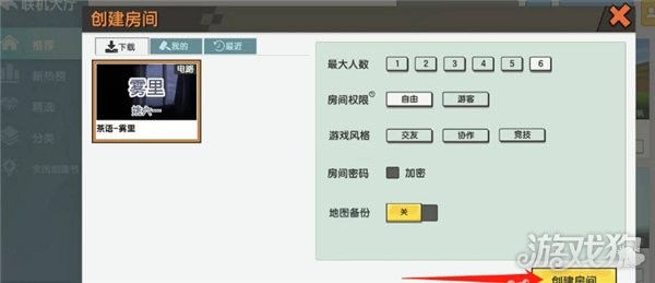 3、点击之后设置好房间的信息后再次点击右下角的创建房间,如图所示。
