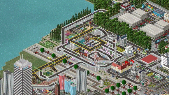 用单行道造一条皮亚诺曲线 Peano Curve 是最有成就感的了,实况上实际效率也更高,不过在游戏中,无论是拥挤度和满意度的表现都不如直接的井形,我觉得是游戏设定有问题。
