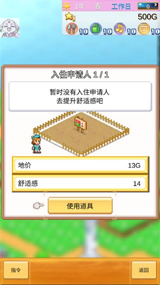 4、居民会有入职需求、比赛需求、新建筑点子,每隔一段时间检查居民,特别措施中的联谊要经常点,两人结婚能同居,存款算两人总和,生的孩子会回来当新居民而且都是豪宅,如果不生孩子后期居民数量、居民等级、租金会很少。