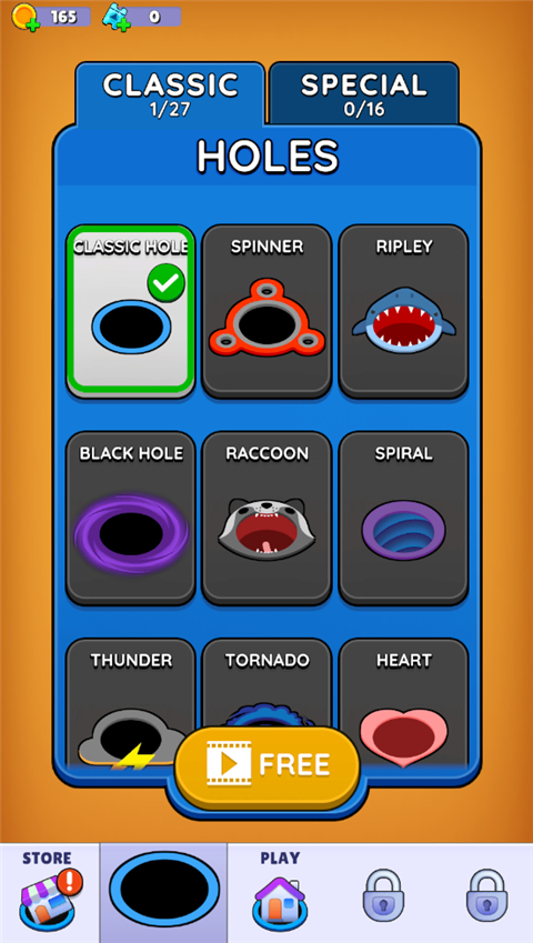 1、在本站下载该游戏后打开进入游戏主界面,点击左边的HOLES。