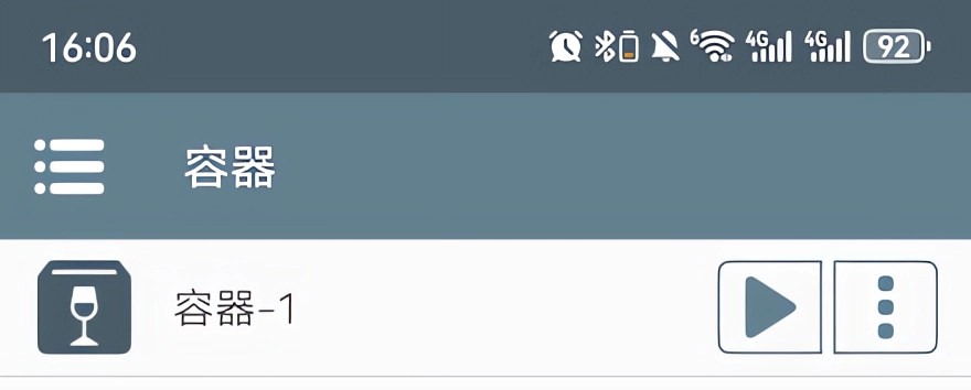 1、安装容器点击播放选项;