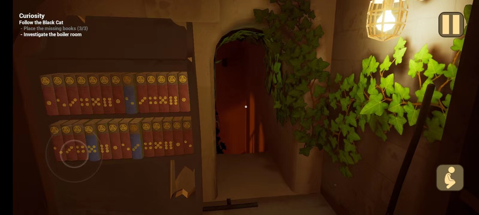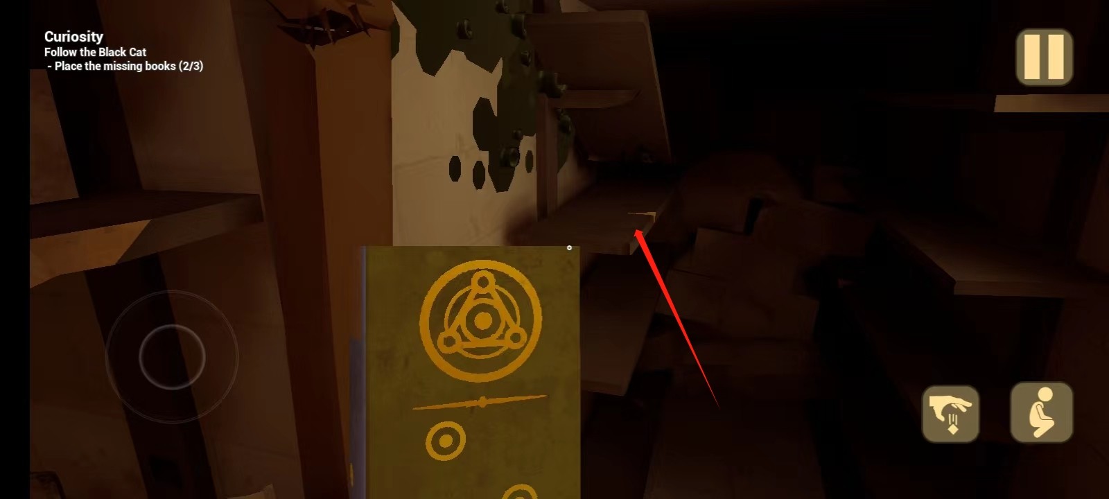 4、然后就正式进入游戏了,往前走,会看见一个书架,书架上面少了三本书,玩家需要找到这三本书,根据树上的圆点数量放到相应的位置上;