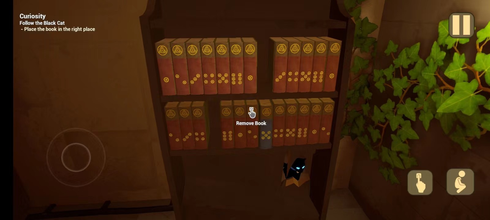 6、将书放进去后,书柜就会打开;小猫又不见了;