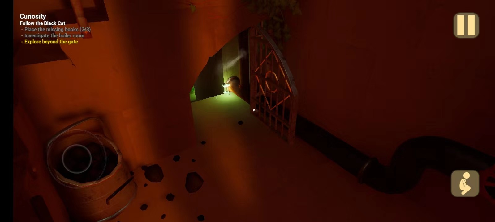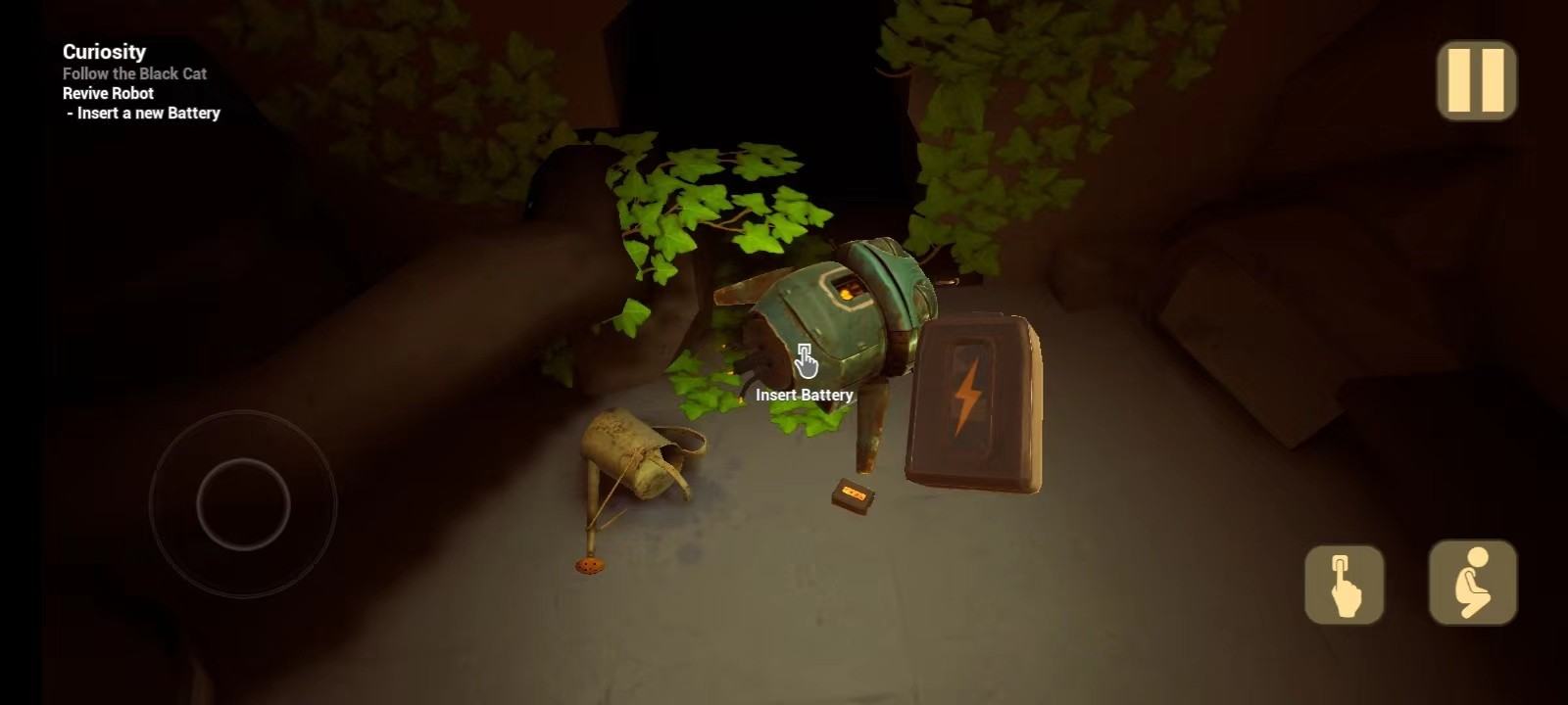10、往右边走,打开里面那扇门,会发现小猫,然后会出现一个机器人,玩家需要找到电池;