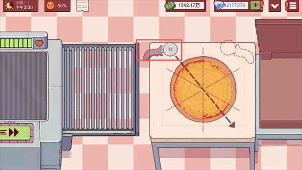 新店开业,迎接顾客:顾客进店后,根据他们的要求制作披萨,例如,有的顾客可能要求将披萨切成六份,务必根据顾客的需求,确保每一步都精准完成。