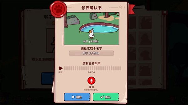 3、每个领养来的动物你都可以为它命名并录下你的声音作为它的叫声。