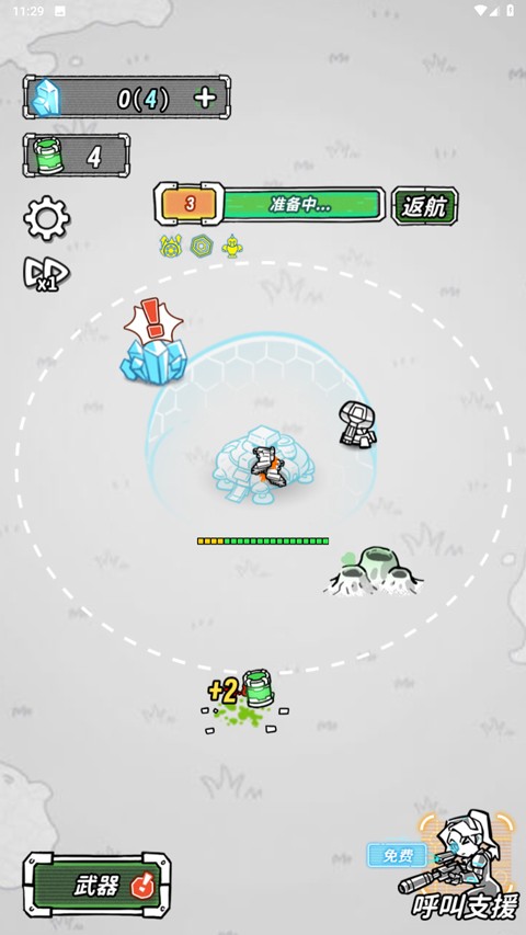 5、游戏采用自动攻击,在消灭一波敌人后可选择返航;