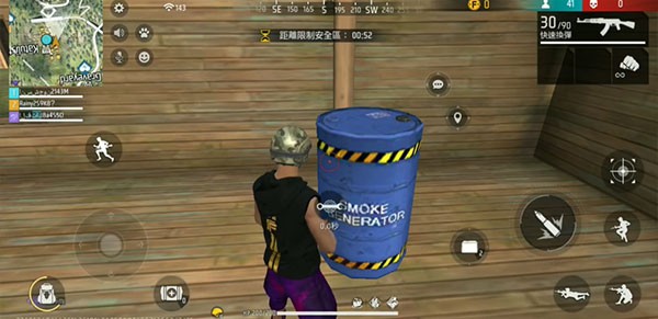 6、装备武器搜索得差不多后,我们就可以点开地图看看安全区的位置了,白色圈内就是安全区,而且随着时间流逝,安全区会越来越小,我们要待在在安全区内才能避免被毒雾所感染。如果大家离安全区较远,那么可以在路上找一辆车,然后开车前往安全区。靠近车辆后,点击驾驶即可开车,开车方法跟大多数赛车游戏差不多,左下角两个按钮控制方向,右下角择优油门和刹车。我们可以提前开车到安全区中心区域,然后继续搜索物资,并且随时注意周围其他玩家。