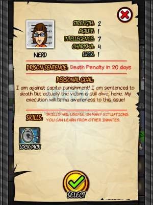 2、NERD,盗窃入狱,性格比较好相处也就是所谓的老好人,搞好关系肯定比较简单,但是想要逃出去需要玩家在游戏中自发更多情节才行。
