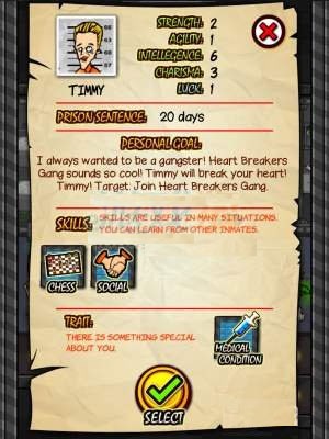 监狱人生rpg最新版是一款能够还原监狱生活的角色扮演游戏,这款游戏采用了简约的卡通游戏画风,带给玩家轻松的视觉效果感受,这款游戏中玩家将扮演囚犯,选择不同的角色,每个角色都有不同的性格,技能和不同的人生目标,走向不同的游戏发展方向,走向不同的游戏结局,对此感兴趣的玩家一定不要错过,快来下载体验吧。