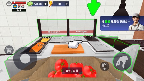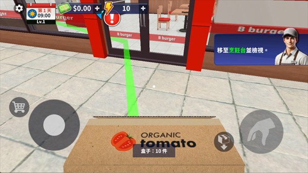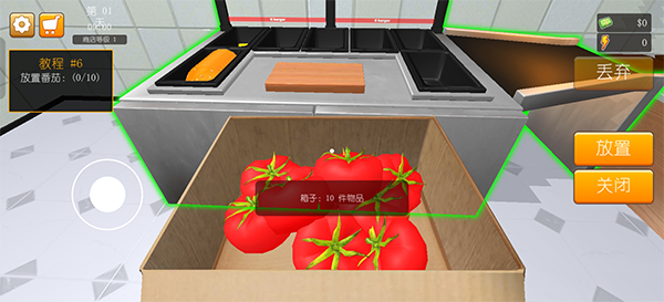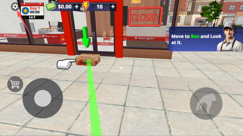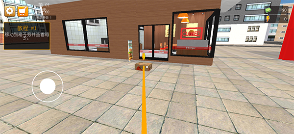1、进入汉堡模拟器汉化版游戏内我们先来熟悉操作,然后根据提示前往箱子这里。