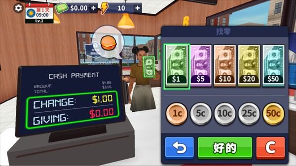 1、采用3D的画面设计,经营汉堡店更加真实,沉浸经营管理中。