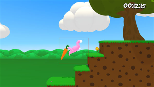 6、然后让自己的图纸滚到目标位置,然后按跳跃键,这就是抓取键,只要玩家的兔子抓的是萝卜的根部或尾部,你就能把这个萝卜抓起来,然后一直按住就能把萝卜抓在手里,然后随意翻滚都没有任何问题;