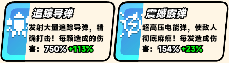 主技能1:追踪导弹、主技能2:震撼霰弹