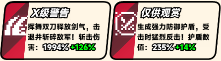 主技能1:X级警告、主技能2:仅供观赏