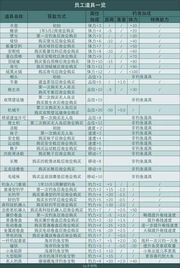 喜爱钓鱼,喜爱钓鱼的工作人员数量*1.0提升可钓起的重量