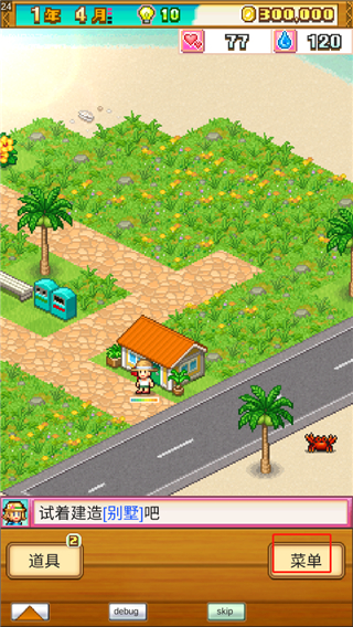 5、玩家需要先建造别墅,点击菜单;