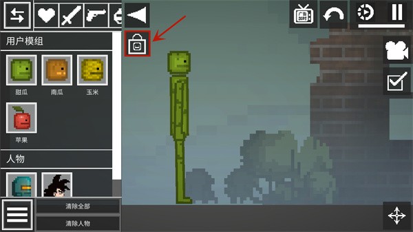 1、进入游戏地图中,选择左上角的第二个选项,一个甜瓜人图像的,就能进入其中。