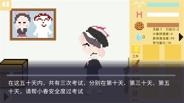 1、玩家需要帮助小春安全地度过这五十天中的所有考试。